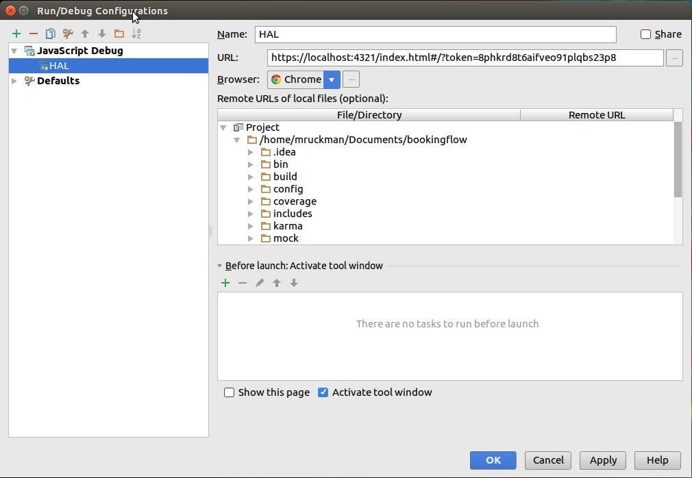Once that is done, you should setup a debugger configuration to launch from within WebStorm, using JavaScript Debug. You'll need launch this target in Debug. You can also setup Chrome as your default browser.